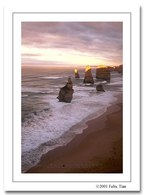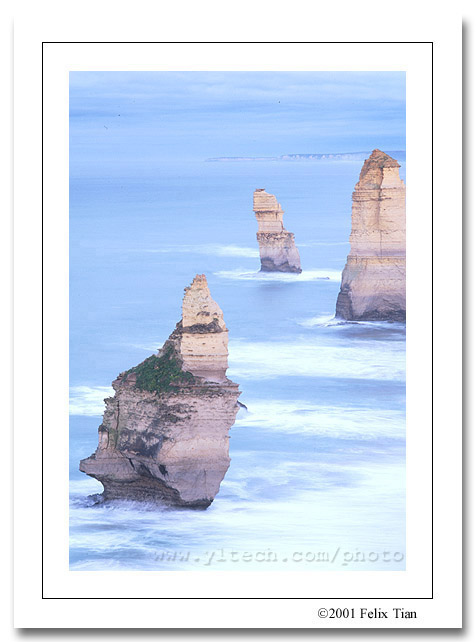 在栈道上,我遇到了一对也架着三角架的摄影夫妇,我把昨天的经历讲给他们,指给他们看我曾经站过现在淹在水里的沙滩。他们就住在附近,但奇怪的是他们竟然从来没有下到悬崖下面去照过这些石头。我们交换了EMAIL地址,当我一个月后回到美国时,看到了这对叫Dean和Jenny的夫妇在我网站留言板上的留言。