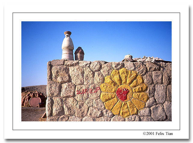 经过约一个小时,汽车进入了沙漠地带。在漫天的风沙里,我终于看到了金字塔的身影。车越走越近,我不禁有点失望,它谈不上宏伟,一级一级的,象个缩小了的中国梯田,风化得十分厉害。但矗立在荒芜的沙漠里,它仍然有种动人心魄的力量。这座金字塔叫Saqqara,建于五千年前,鼎鼎大名,埃及产的一种清淡略带德国口味的啤酒就是以它命名的。