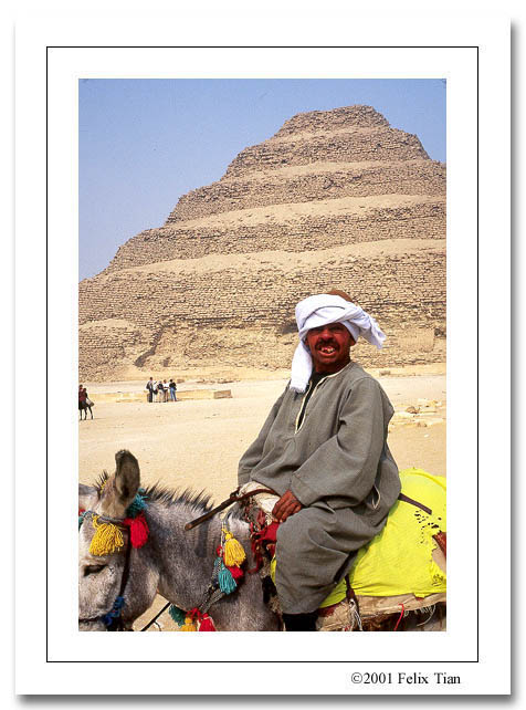 我蹦出车,披挂好,给自己和相机买了门票,直奔进去。没走多远,就发现自己陷入重重包围之中,那是些贩卖各种东西的小贩,还有拉游客骑马,骑骆驼的。有个骑毛驴的冲我高喊“Photo! Photo!”, 看着他充满异国情调的长袍,头巾,我不禁大喜,可当我举起相机,从取景器中看到他为赚一镑小费而挤出的职业式笑容时,顿时泄了气,我要的是生活中真实的人像,不是虚假的笑脸。