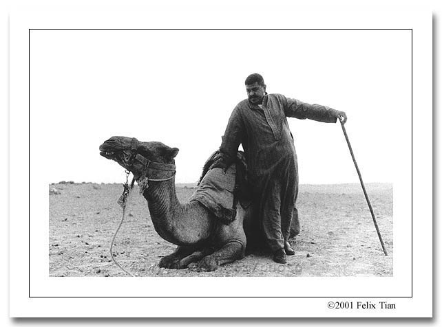 胖阿里见状不对,拄着棍子,踱着方步走到骆驼旁边,仰头温和地向那士兵解释,并指指我。我使劲向那士兵挤出个充满了另一个五千年文化底蕴的笑容。士兵白了我一眼,又高声训斥起阿里来。阿里似乎并不买账,也提高了声音,语气不再温和。气氛开始紧张起来,站在一旁的伙计有点不知所措。