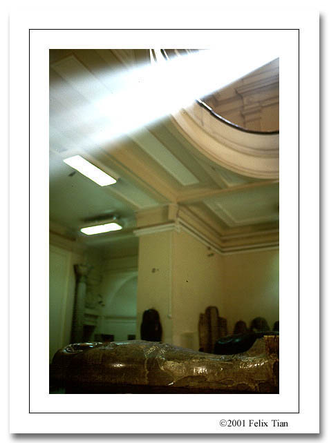 一楼展示的基本上都是上古的石像,石棺。大厅里采光非常不好,用100度的胶卷,1.4光圈,快门速度大多数在1/4秒以下,要拍照,此时此地非M6莫属。为了抵消大块阴影的冷色调,我在M6里装上了Kodak E100SW。