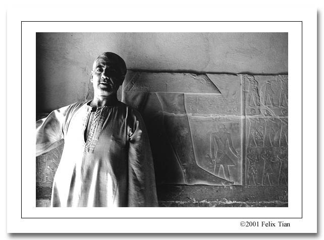 我吓的差点儿没跳起来,回头一看,一个长衫守墓人不知从哪儿冒了出来。我把票递给他,他看了一眼说:“你的相机票已经在另一个金字塔里用过了,要重买。”