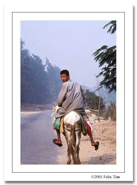 Abdel再三说如果我要照相他就立刻停车,但奇怪的是,尽管光线很好,我一点按快门的欲望都没有,我明显感觉到在我和车外人们之间有一堵看不见的墙,妨碍我走进他们的生活,限制我的想象空间,而如果没有东西激发我的想象力,我是按不下去快门的。我自己的经验是:当面对一个景色或人物时,如果我能想象到片子上的影象,那么出来的片子通常都是有灵气的,而今天我什么都看不到,脑子里面空空的。