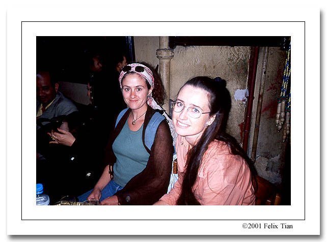 我在Khanel-Khalili里一直转到天黑,圆满完成了采购任务,累得口干舌燥,两腿发软,不辨东西。抬头看到前面小巷子里有个露天咖啡馆,赶紧走过去,找个座位正要坐下,听到有人叫 “ Felix”,一回身,看到四只笑眯眯的眼睛,竟然又是那两位可爱的澳大利亚姑娘。