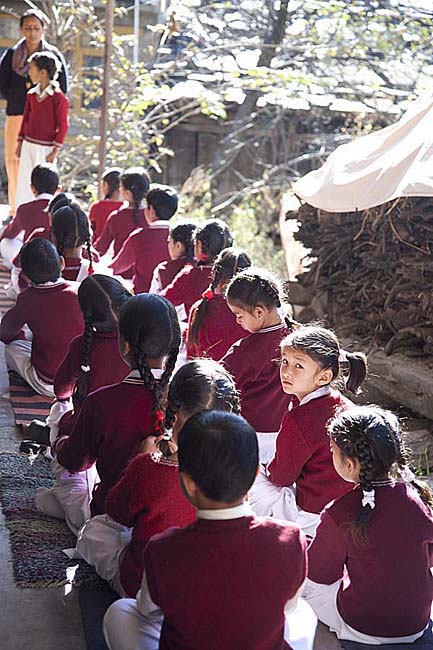 细看下,果然,那些五、六岁的孩子们盘腿而坐,双手合在胸前,低头阖目,童声童气地以一种诗歌般的韵律高声吟诵。