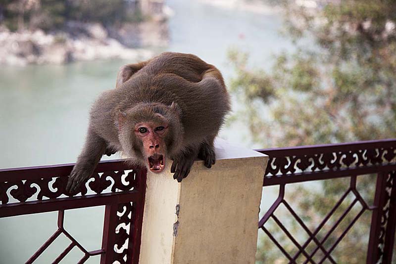 我飞快地闪进屋里,用5DII隔着门缝盲拍了几张。那猴子冲着我的镜头犹在嘶吼。
