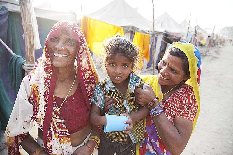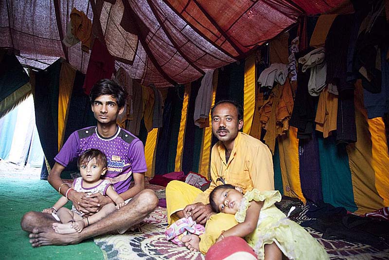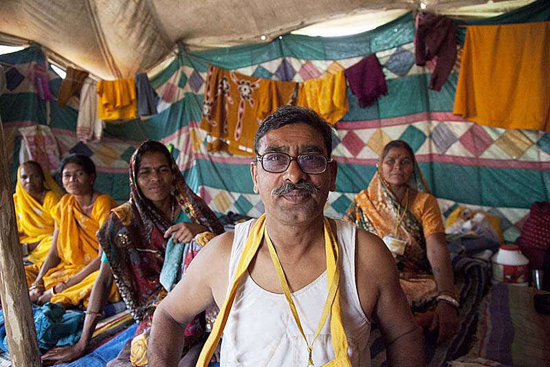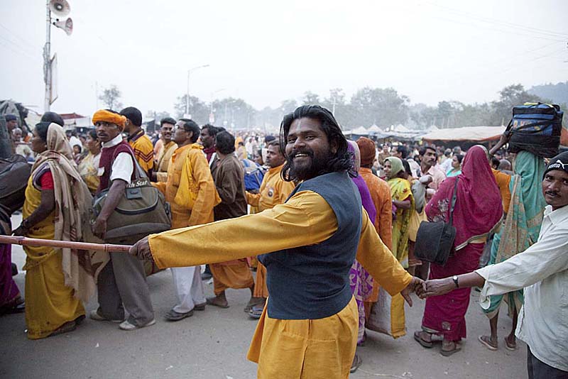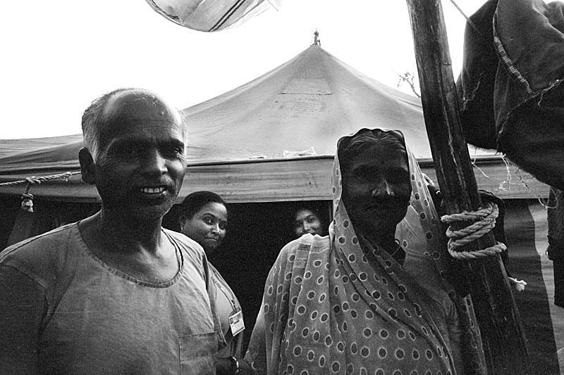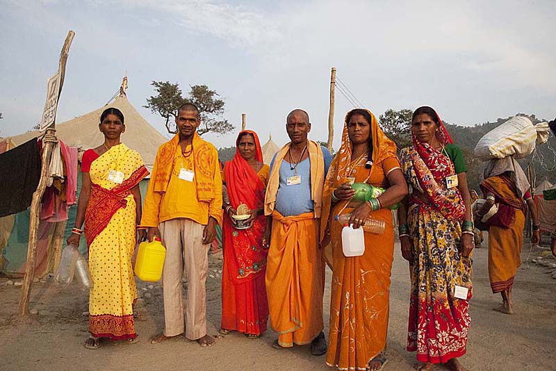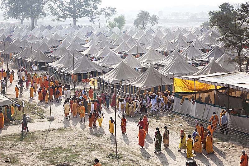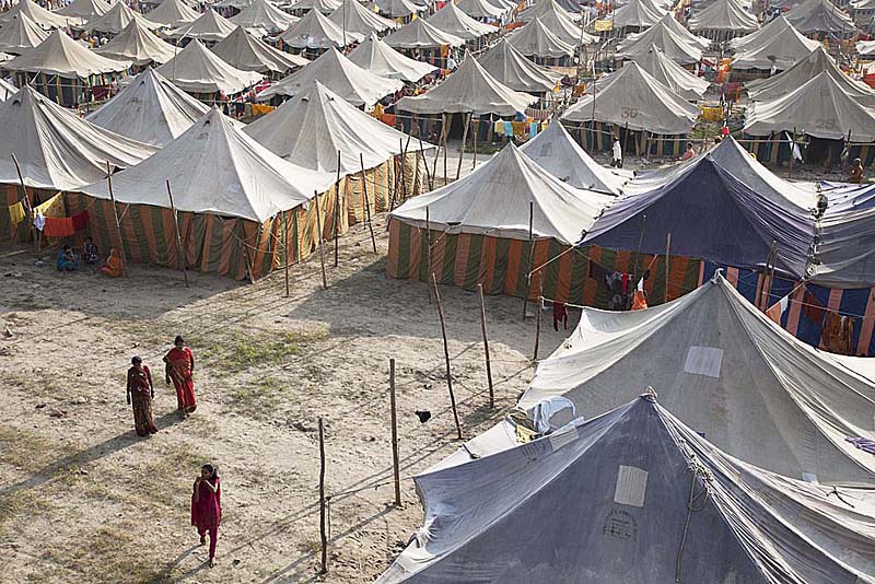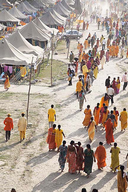 我自以为每年去沙漠里看到的五万人帐篷连营已经非常壮观,可是此时,当我站在恒河之畔、高岗之上,面对着眼前金灿灿的逆光里一望无际的帐篷阵营,目瞪口呆,心旌荡漾。