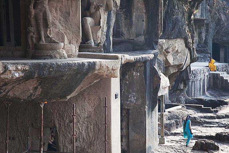 Ellora始建于一千三百年前,开凿出的洞窟分别属于佛教、耆那教和印度教。在印度漫长的历史上,各种教派如潮水般起落,各领风骚,为擅长思辨的印度人提供着各种关于人生意义的解决方案。