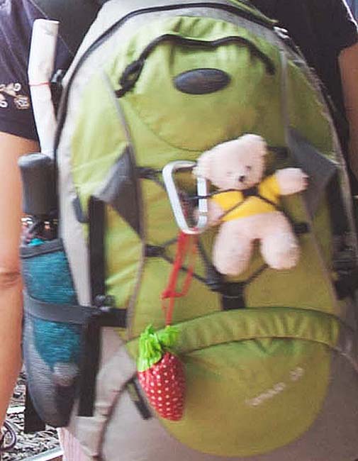 蓝妹妹向我挥挥手,笑容纯真依旧,她转过身,轻盈地走向车厢,那只小玩具熊依然在草绿色的Daypack上晃来晃去;背包侧面依然插着那张在流亡藏人居住区的地摊儿上买来的世界地图。