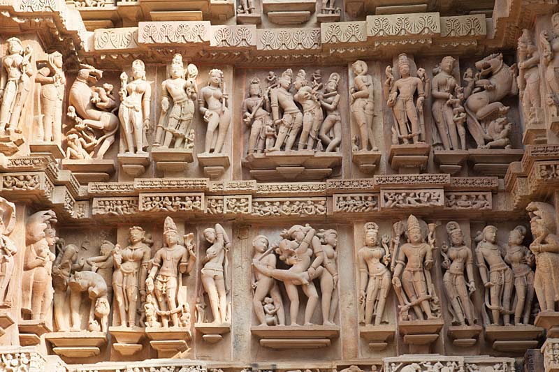 Khajuraho庙群原有85座神庙,现仅存22座,建于公元1000年左右的月亮王朝。为何人所建已不可考,为何雕建了大量性爱场面也是众说纷纭。但它证实了我沿途所见而产生的一个疑惑,即现存的印度文化与史前印度文化无关,而且印度文明史上有一个天才集体爆发的时期,其光芒跨越了千年,至今依然夺目,令人仰视。